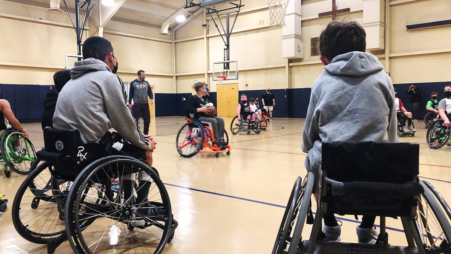 “At school I still play basketball but it’s mostly with kids that are standing up,” he said. “But here, I can play with kids that are in wheelchairs and they’ve got the same struggles as me.”