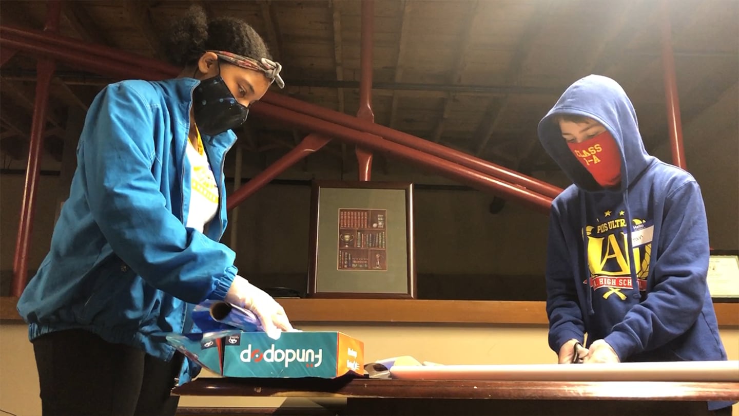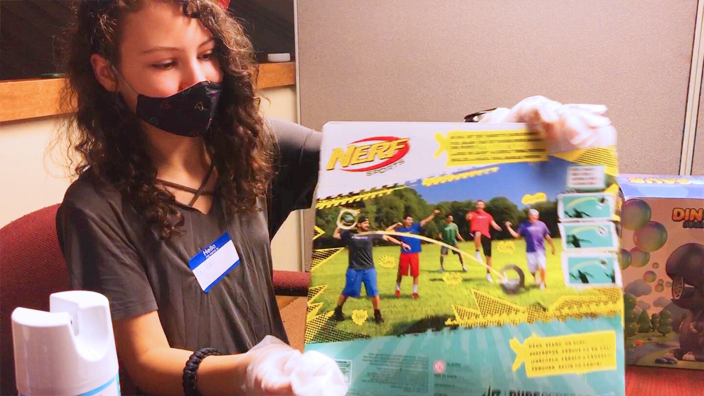 On Saturday, volunteer students from her school joined Mia at The Freeman Law Group where they sanitized the toys and wrapped the gifts in a room full of joyful middle school students.