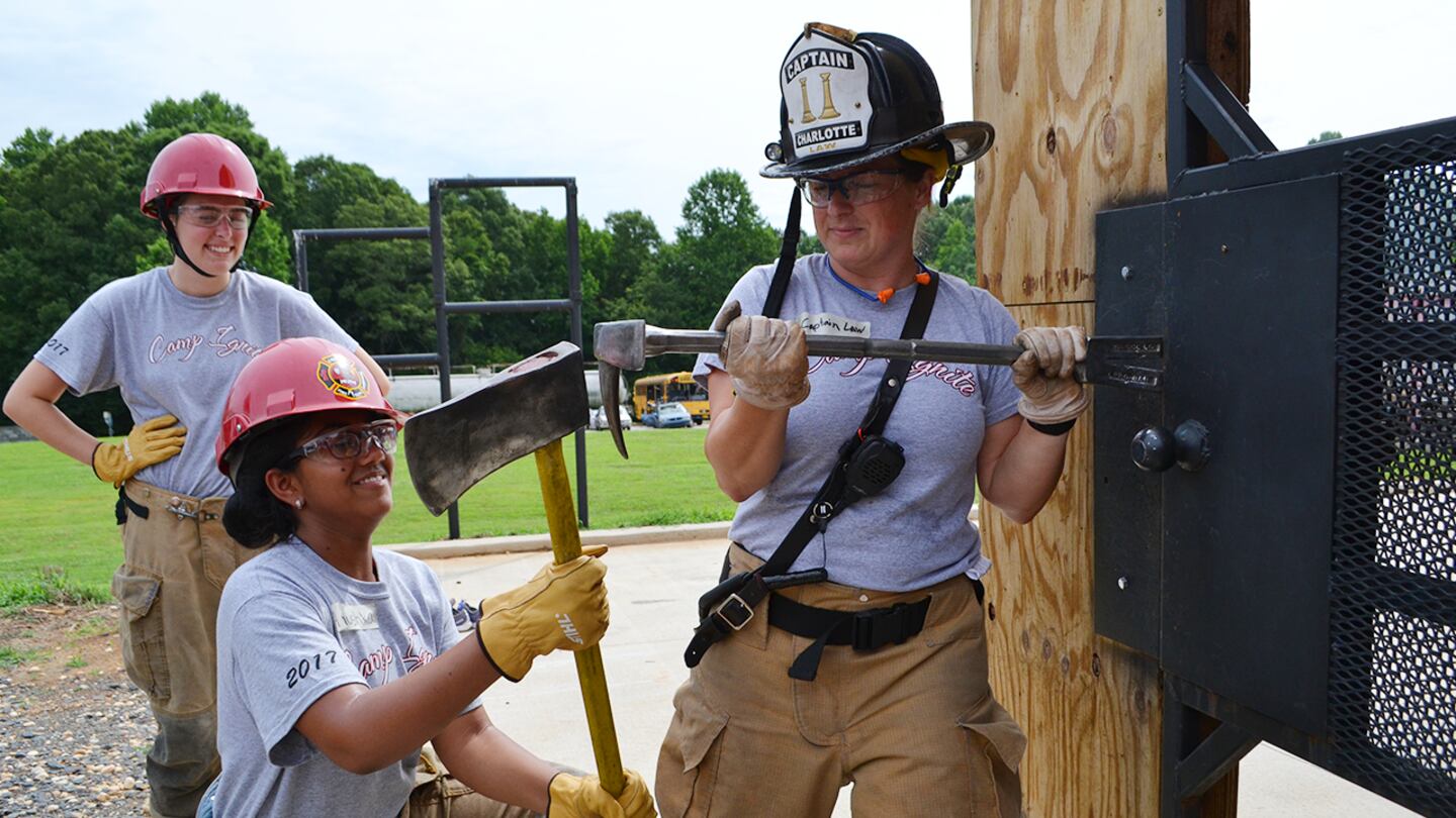 Camp Ignite is a free hands-on resident camp that focuses on the development of teamwork, self-confidence and leadership skills in young women by utilizing fundamental firefighting skills.