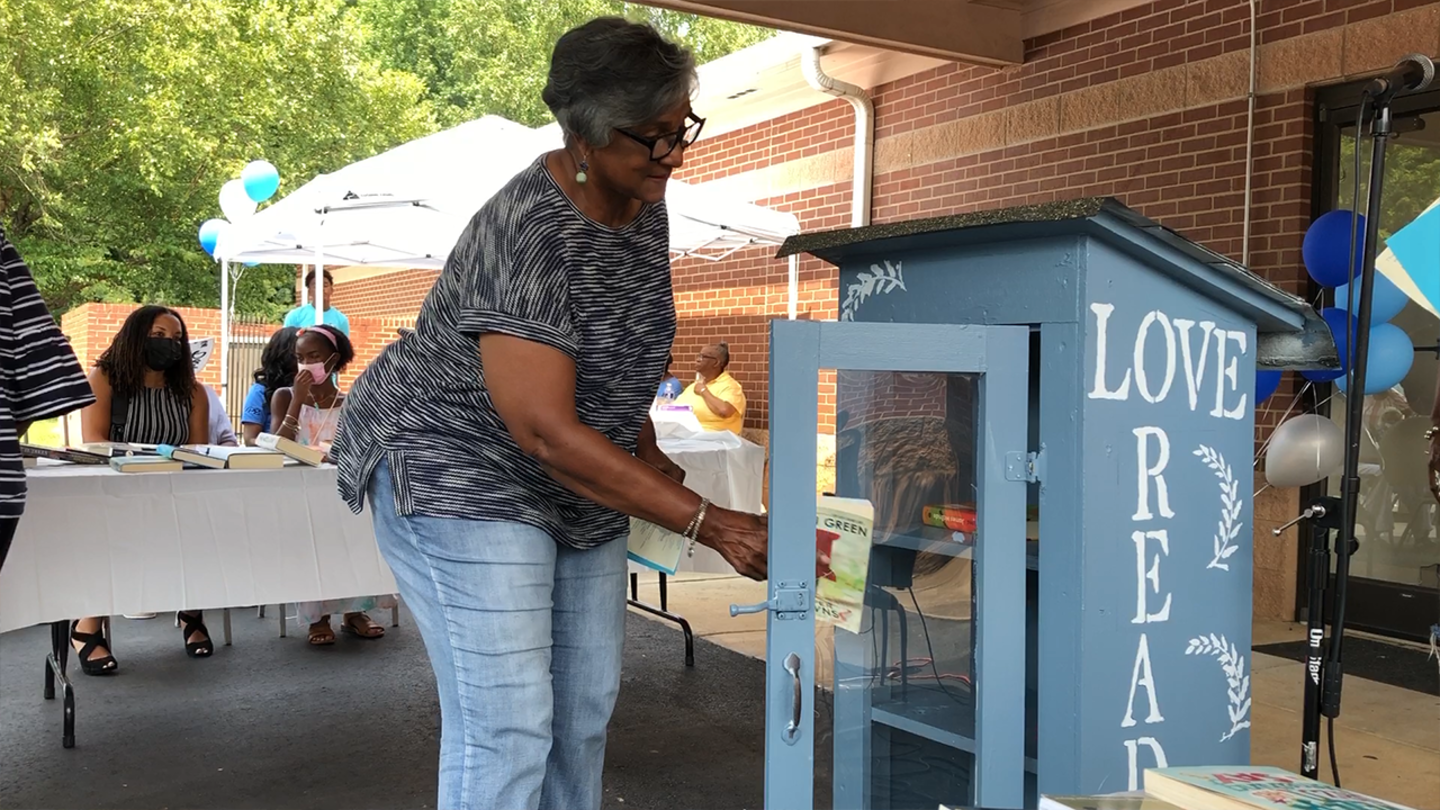 This first pop-up library is located at Steele Creek A.M.E. Zion Church, and the family said that anyone can stop by to borrow a book or leave a book.
