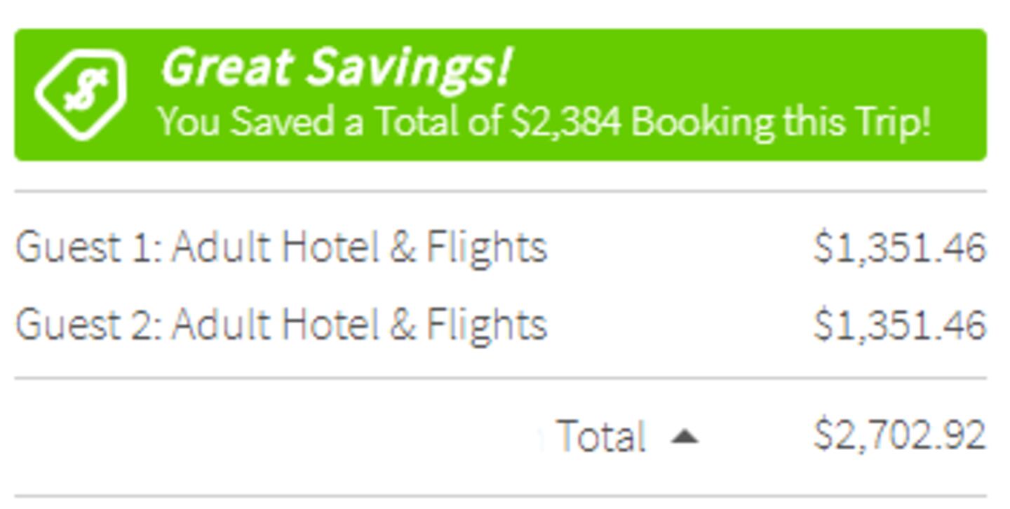 Wow, $1,332! Great price, right? For two people, that’s $2,662. And that’s how it shows up on screen.