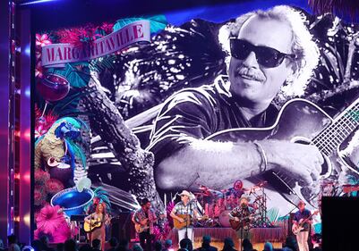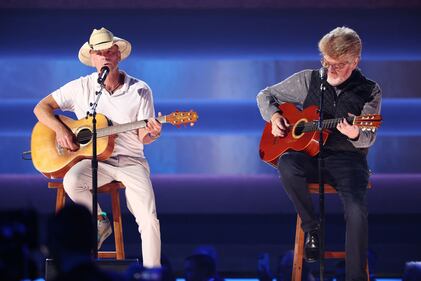 2023 CMAs: Kenny Chesney and Mac McAnally pay tribute to the late Jimmy Buffett. (Christopher Polk/Variety via Getty Images)