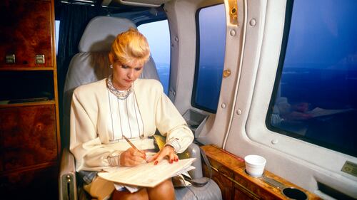 1987 Ivana Trump, Donald Trump's first wife, onboard helicopter enroute from Atlantic City to New York City, 1987 (Joe McNally/Getty Images)