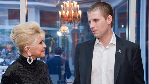 2015 BRIARCLIFF MANOR, NY - SEPTEMBER 21: Ivana Trump and Eric Trump attend the 9th Annual Eric Trump Foundation Golf Invitational Auction & Dinner at Trump National Golf Club Westchester on September 21, 2015 in Briarcliff Manor, New York. (Grant Lamos IV/Getty Images)