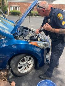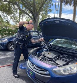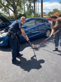 Injured raccoon rescued from car engine A raccoon is recovering after it got stuck hiding inside of a car engine Monday in Clearwater, Florida. (Clearwater Police Department/Clearwater Police Department)