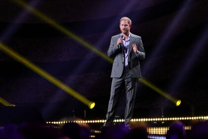 Prince Harry at the 2023 Invictus Games DUESSELDORF, GERMANY - SEPTEMBER 09: Prince Harry, Duke of Sussex talks on stage during the opening ceremony of the Invictus Games Düsseldorf 2023 at Merkur Spiel-Arena on September 09, 2023 in Duesseldorf, Germany. (Photo by Joern Pollex/Getty Images for Invictus Games Düsseldorf 2023) (Joern Pollex/Getty Images for Invictus Games )