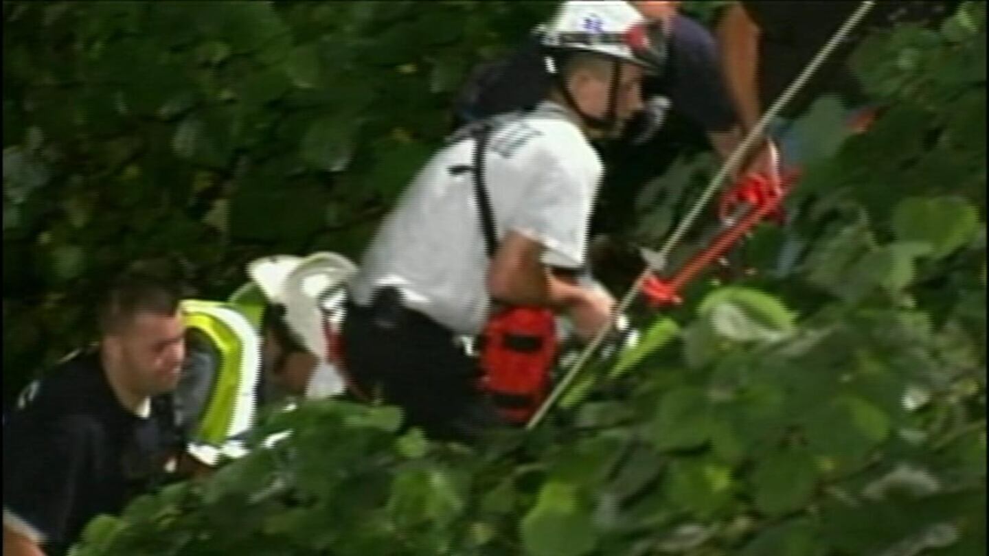 Channel 9 was there as rescuers carefully pulled her broken body up the steep hillside.
