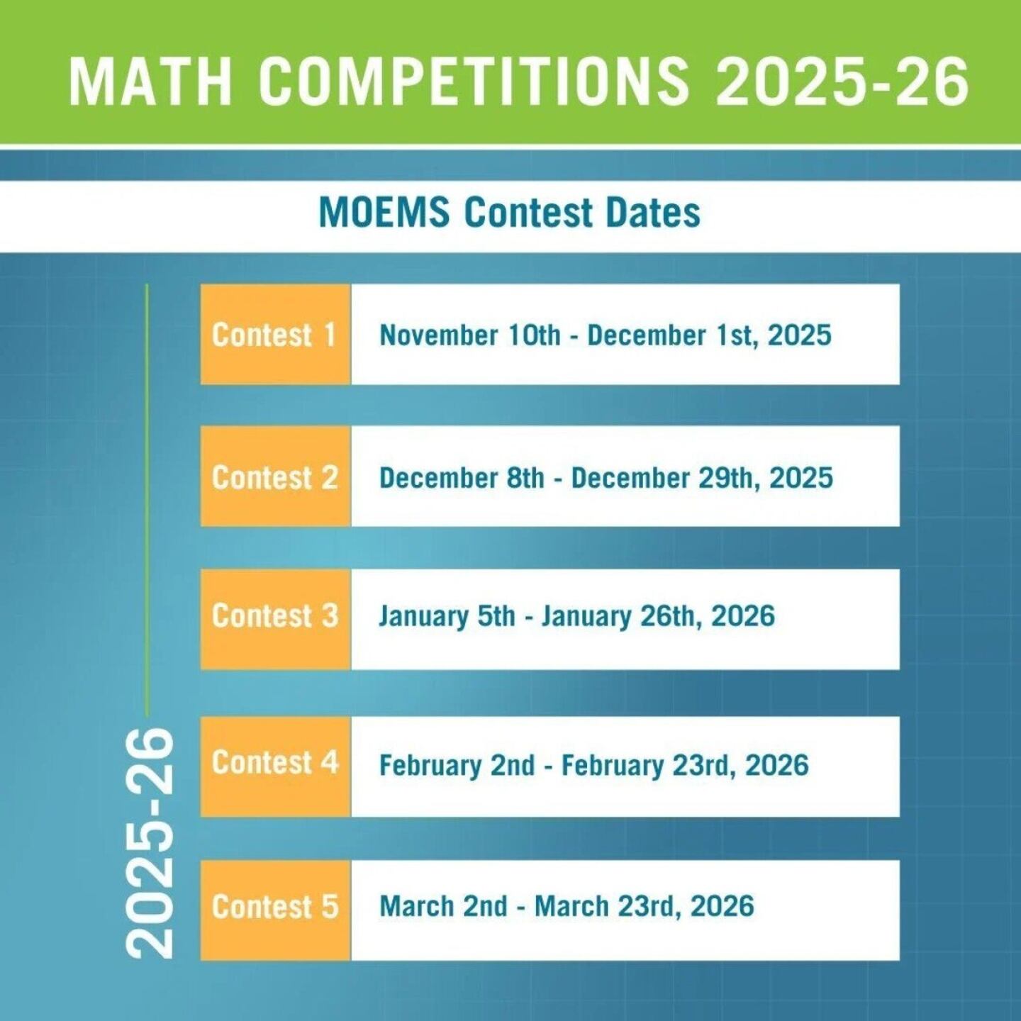 About the Contest: Math Olympiads for Elementary and Middle Schools (MOEMS) is a large and popular mathematics competition for students in grades 4 through 8. It is held yearly from November through March with one test administered each month. Tests are given at individual schools and results are sent to MOEMS for scoring.