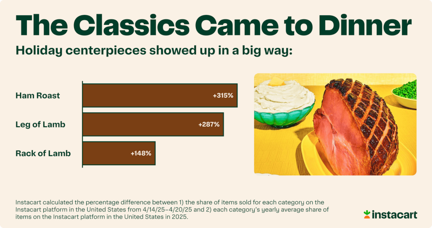 When Easter and Passover arrive, shopping carts transform — filling up with chocolate bunnies, fresh florals, and time-honored holiday staples.