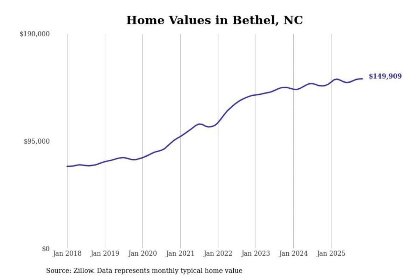 Stacker compiled a list of cities with the most expensive homes in the Greenville, NC metro area using data from Zillow. Charts show the monthly typical home value since January 2018.
