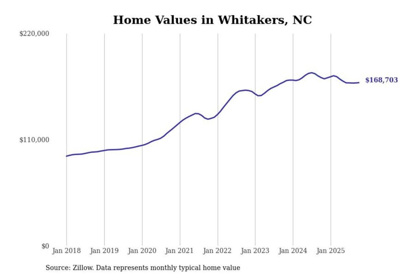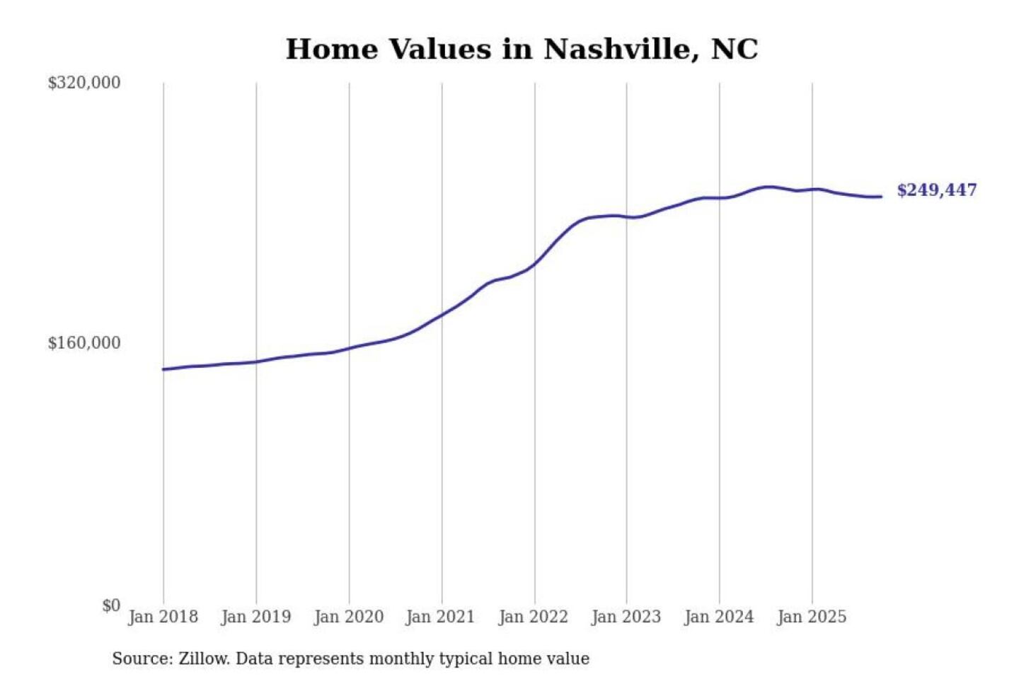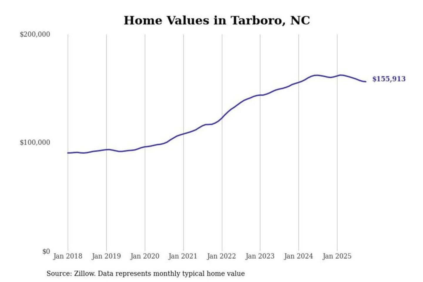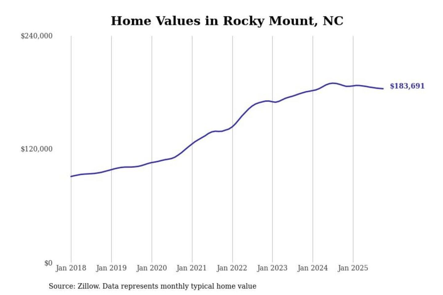 Stacker compiled a list of cities with the most expensive homes in the Rocky Mount, NC metro area using data from Zillow. Charts show the monthly typical home value since January 2018.