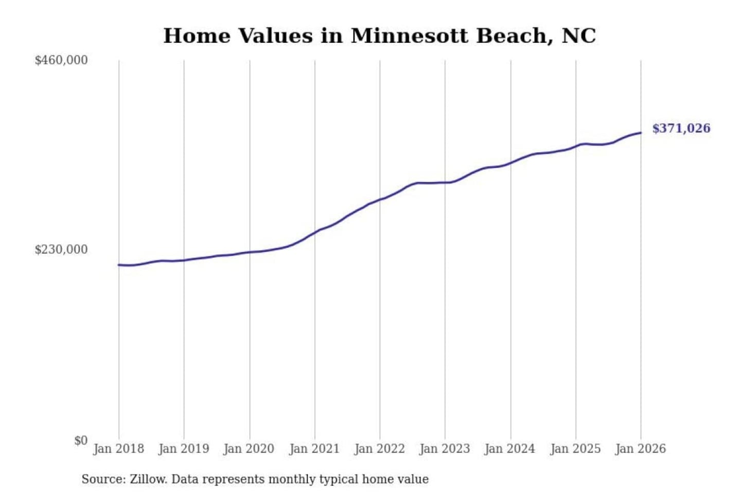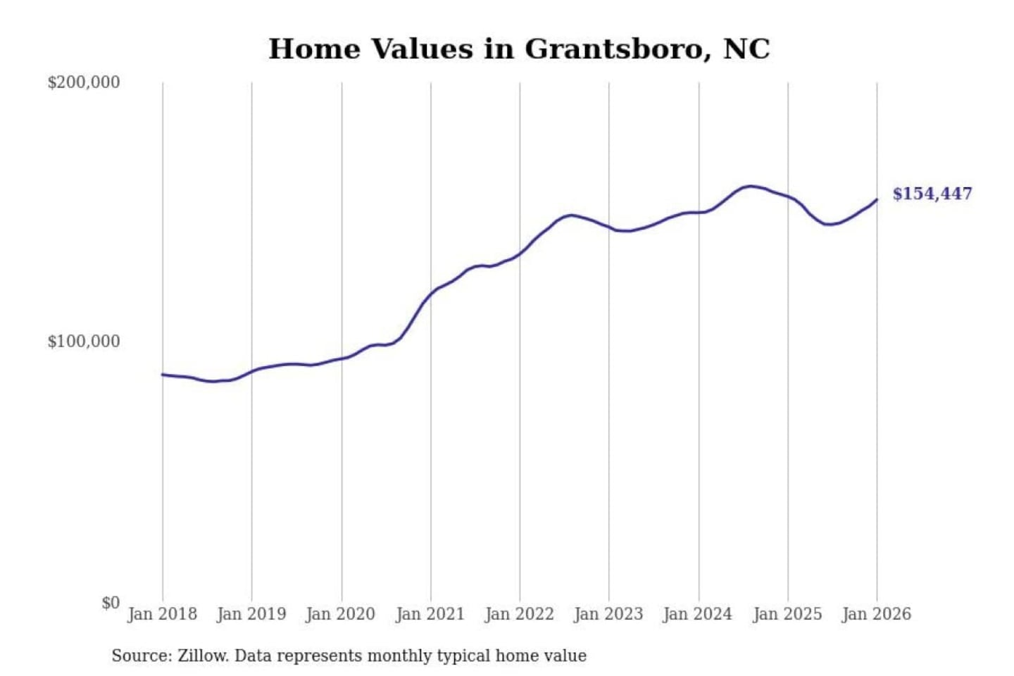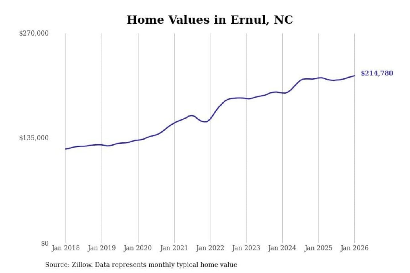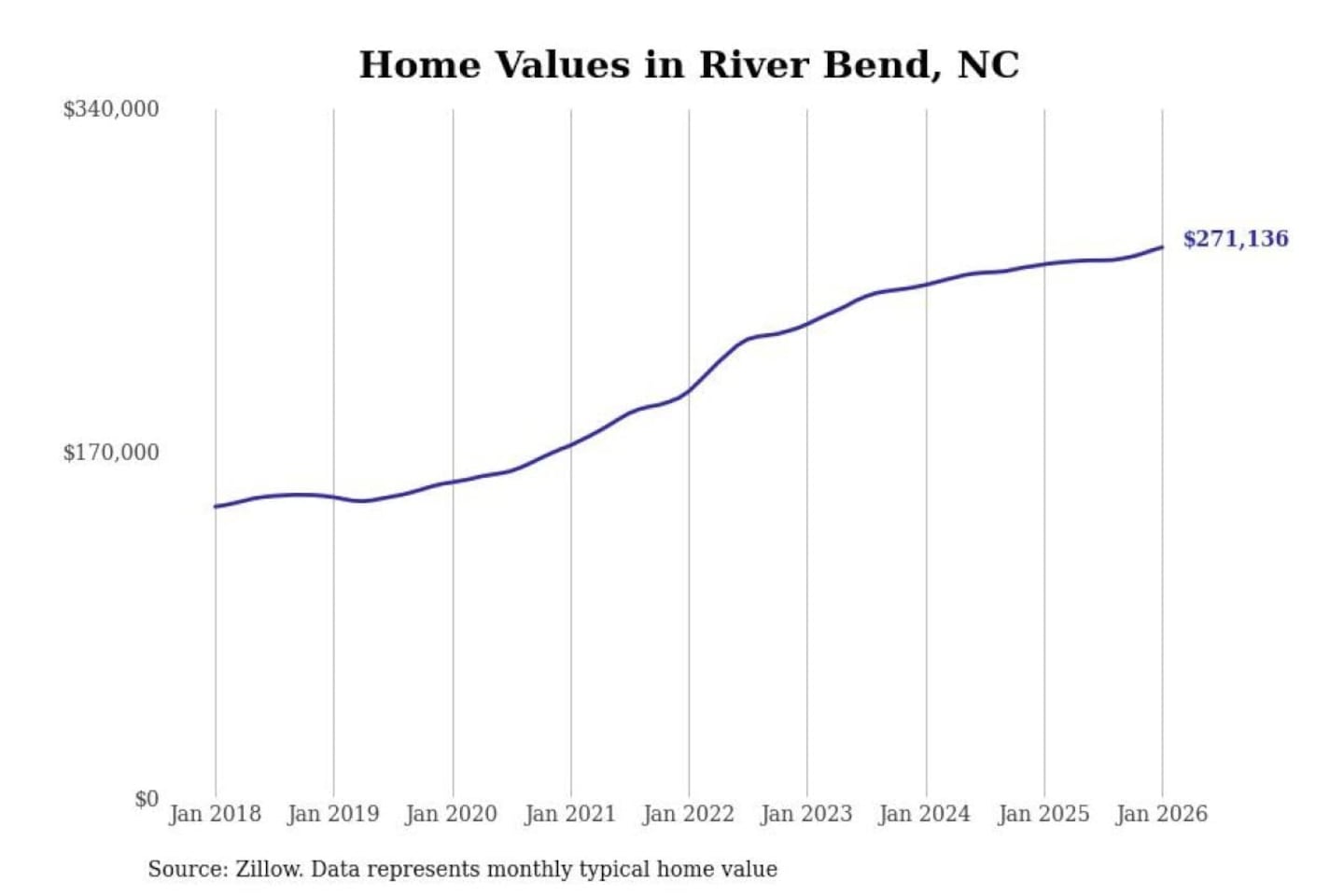 Stacker compiled a list of cities with the most expensive homes in the New Bern, NC metro area using data from Zillow. Charts show the monthly typical home value since January 2018.