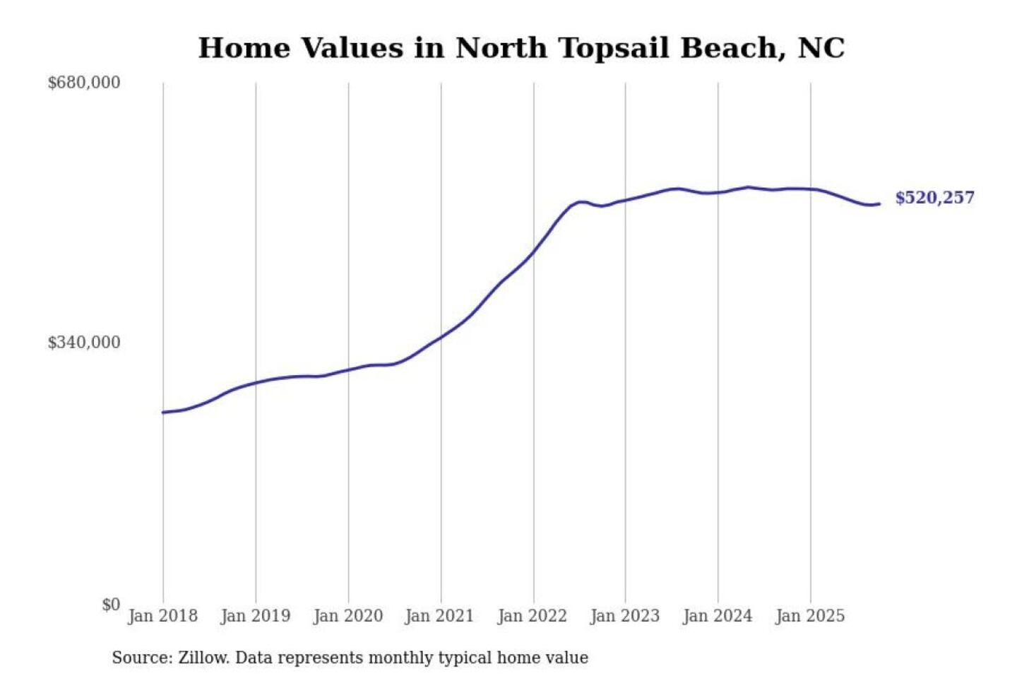 Stacker compiled a list of cities with the most expensive homes in the Jacksonville, North Carolina metro area using data from Zillow. Charts show the monthly typical home value since January 2018. All 11 cities and towns with data available were included in the list.
