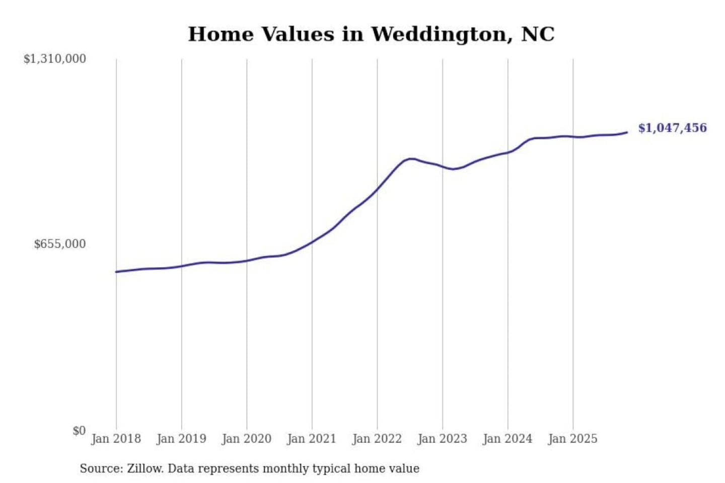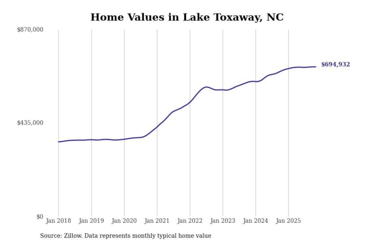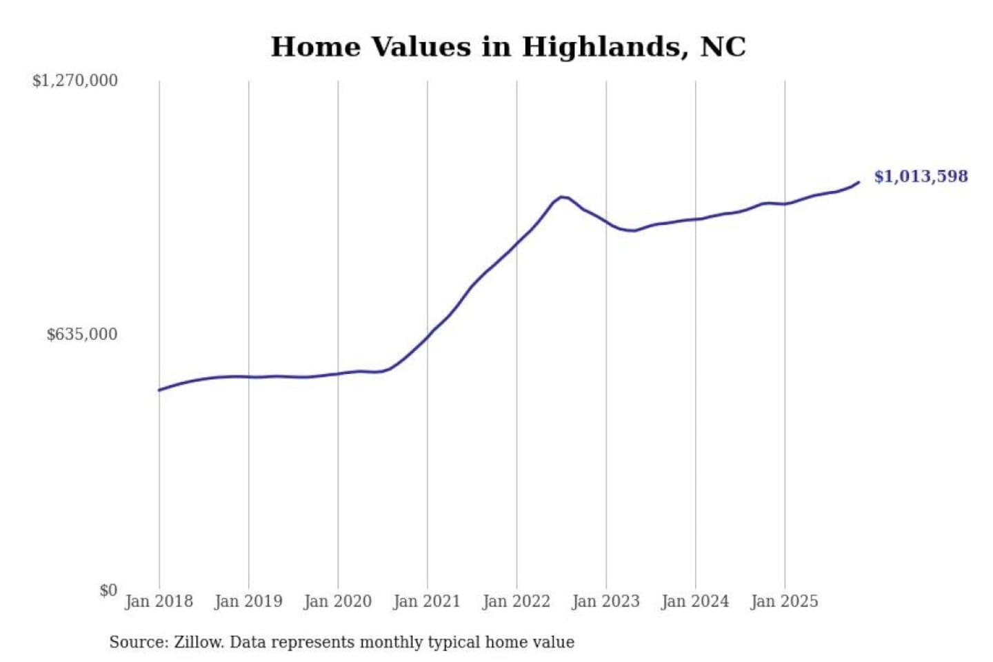 Stacker compiled a list of cities with the most expensive homes in North Carolina using data from Zillow. Cities are ranked by the Zillow Home Values Index for all homes as of November 2025. The charts in this story were created automatically using Matplotlib.