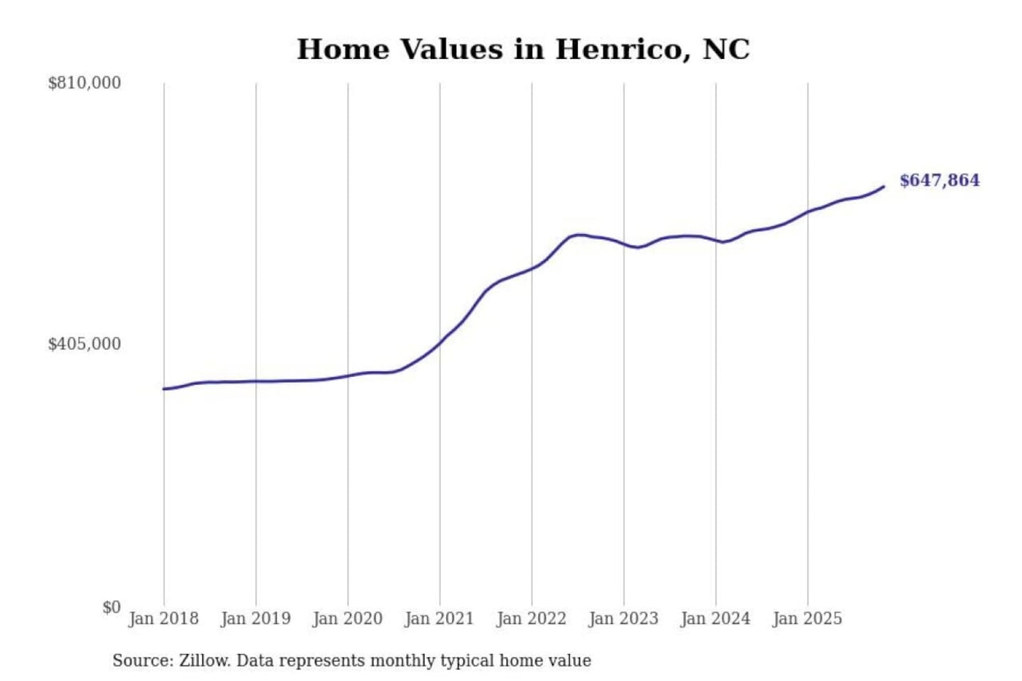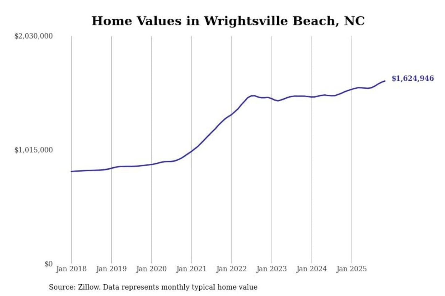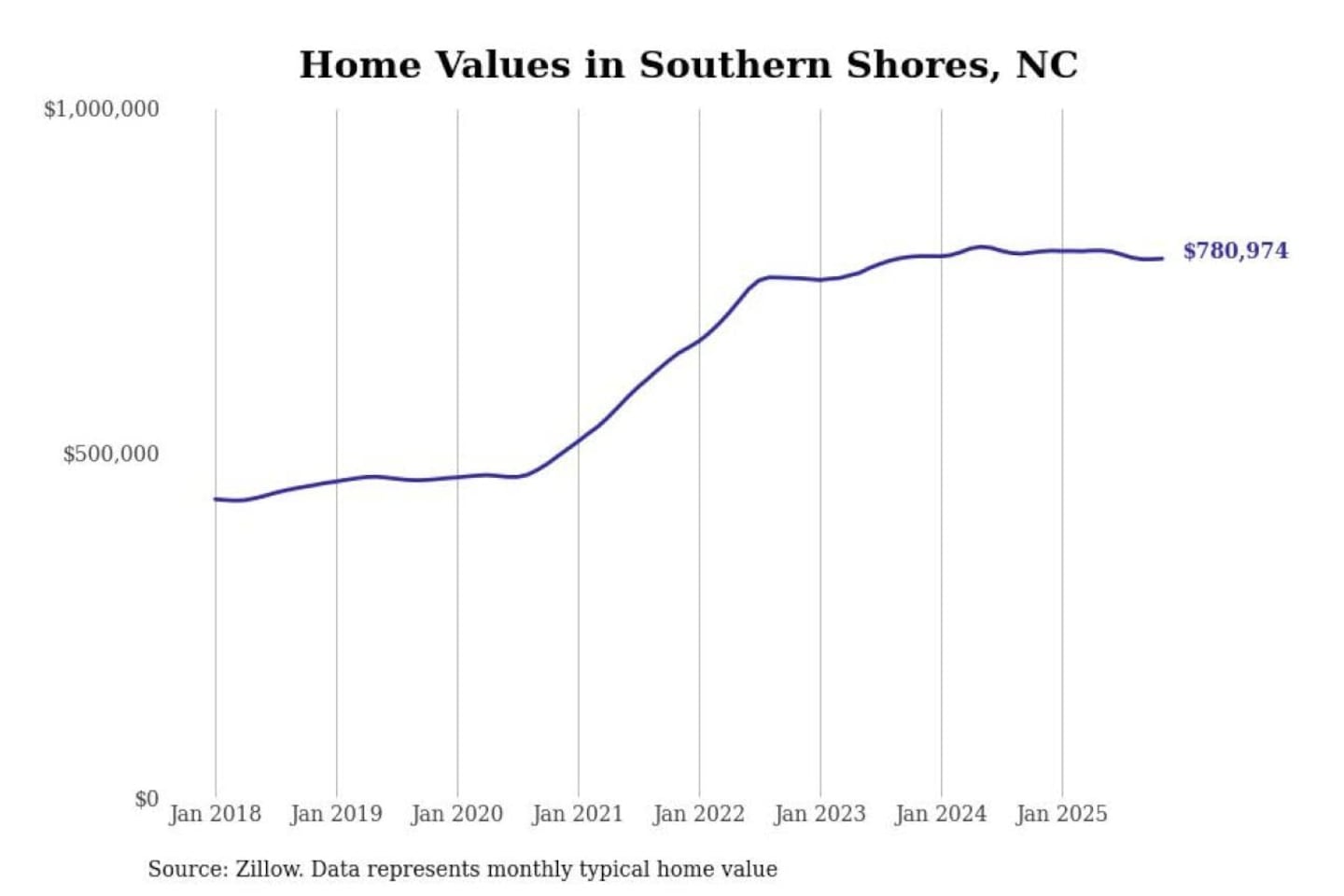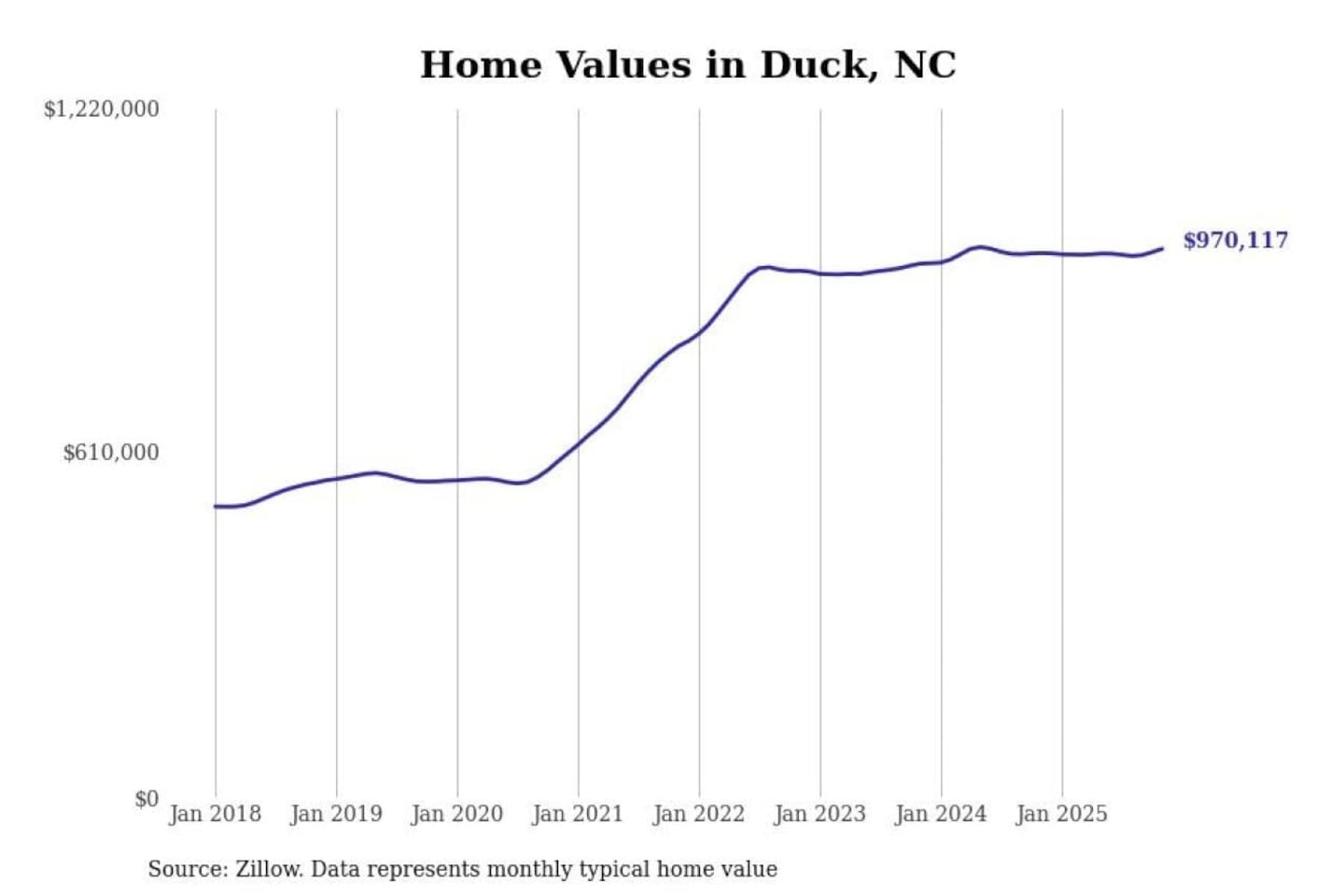 Stacker compiled a list of cities with the most expensive homes in North Carolina using data from Zillow. Cities are ranked by the Zillow Home Values Index for all homes as of November 2025. The charts in this story were created automatically using Matplotlib.