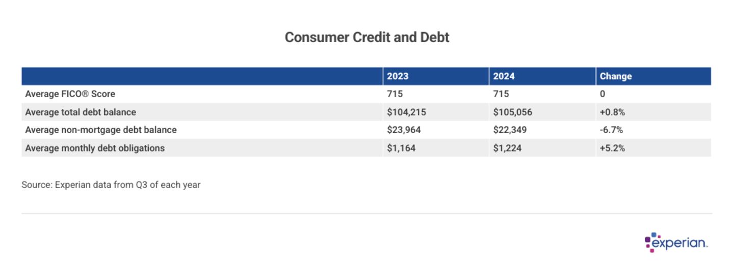 Credit scores remained broadly stable for most consumers in 2024. As of Q3, the average FICO® Score in the U.S. was 715, unchanged from the same period in 2023.