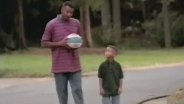 The ad features Dell Curry telling the future MVP and NBA champion that "it will take a lot of hard work and practice" to become a basketball player when he grows up.