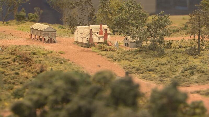 The diorama exhibit shows Uptown as it once was in 1775.