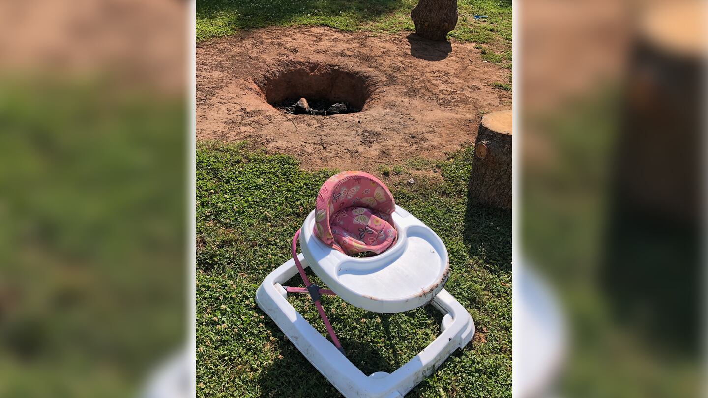 Joshua Lyon showed Channel 9 the fire pit and the walker his daughter was in when he says she accidentally fell into a fire pit in their backyard. Lyon says he was just feet away and he ran over to pull her from the hot ashes. He said they had made a fire the night before.