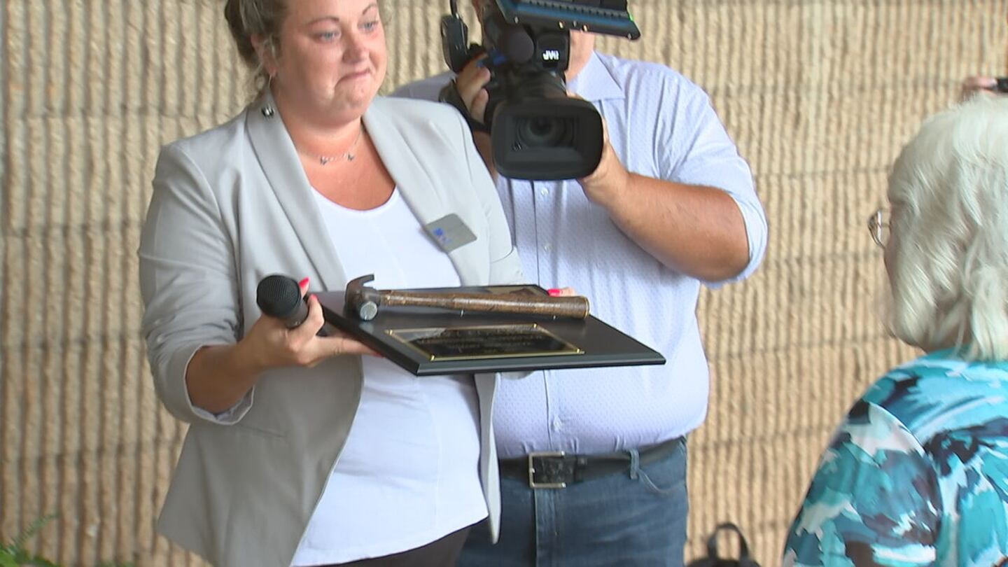 Now, one of the main entrance hallways to the school will bear his name. Channel 9′s Dave Faherty was inside the school when friends, family and employees filled the walkway where they honored Conger. At one point, the principal walked over to Conger’s wife and gave her the hammer Larry used while working at the school.
