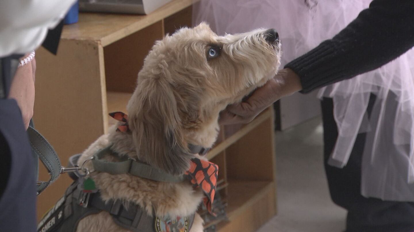 Piedmont Natural Gas and Charlotte Fire made a stop at Thomasboro Elementary with hundreds of Halloween goodie bags and their therapy dogs.