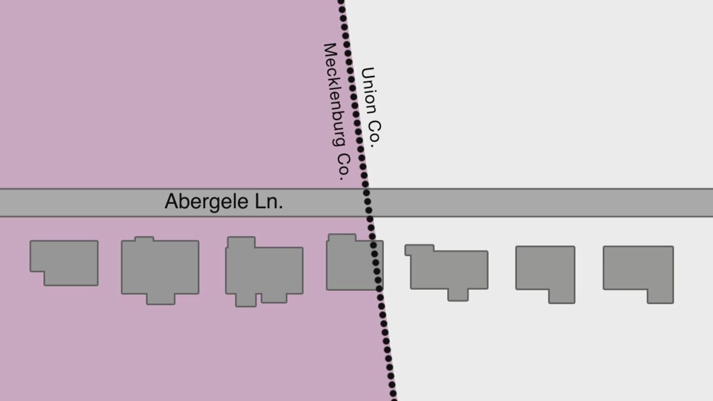It comes down to where a line is drawn on Abergele Lane, putting about 1,000 acres in limbo. The Shannamara neighborhood is split between Stallings and Matthews and is off Idlewild Road.