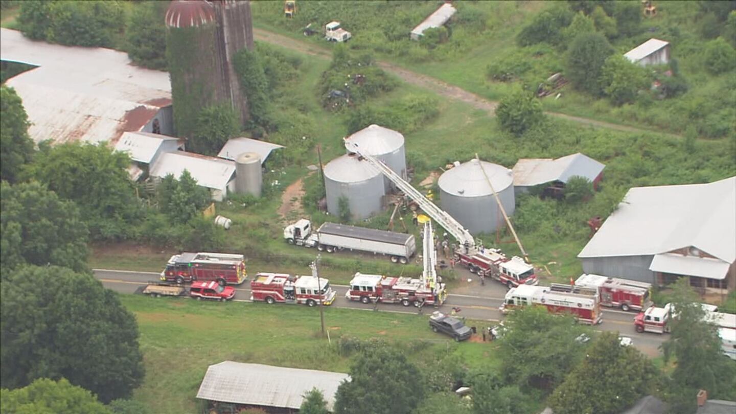 MINT HILL, N.C. — Chopper 9 Skyzoom was overhead when crews rescued a man trapped in a grain silo in Mint Hill Wednesday morning.