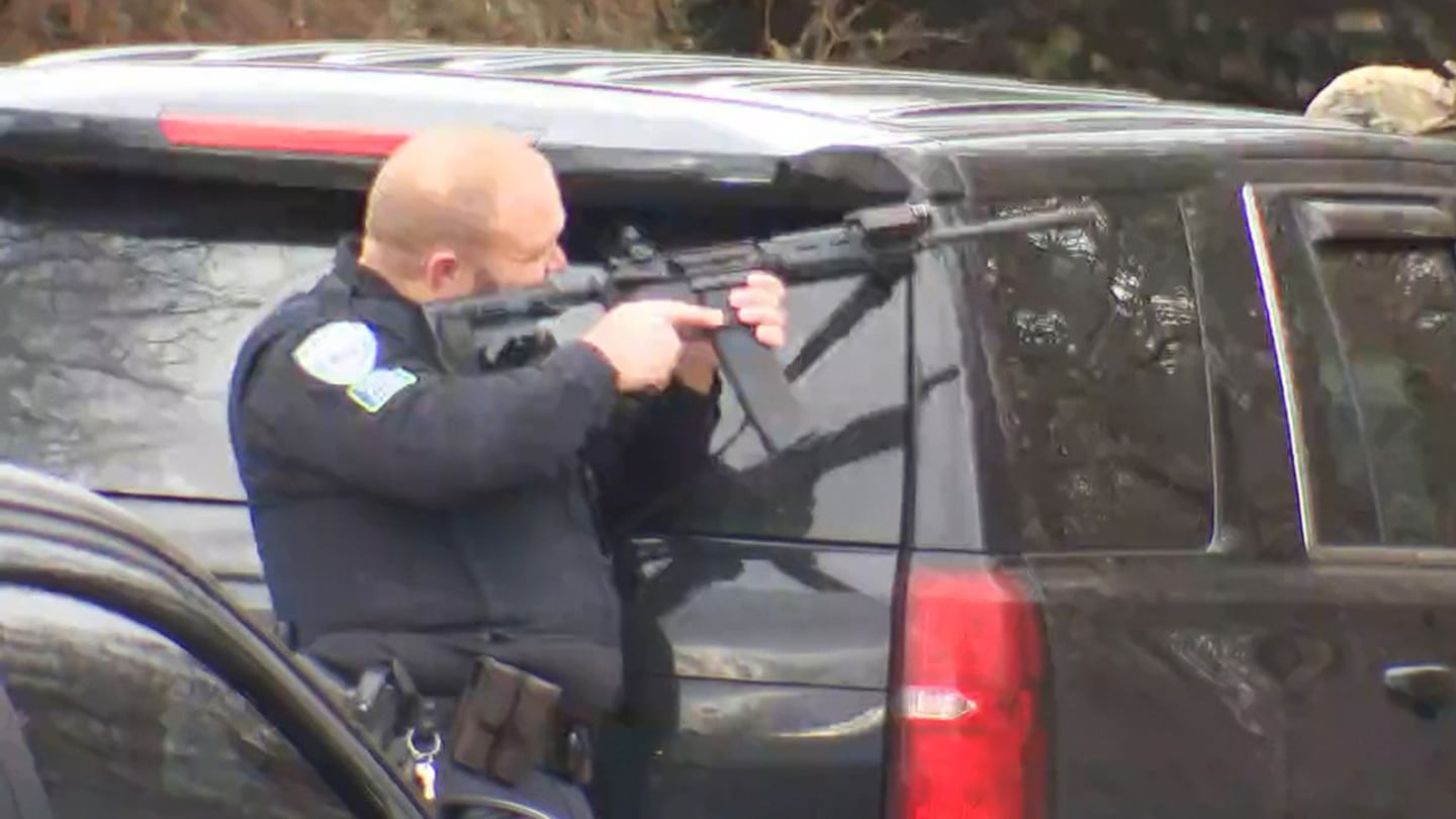Shortly before noon, police said Hahn surrendered and was taken into custody.