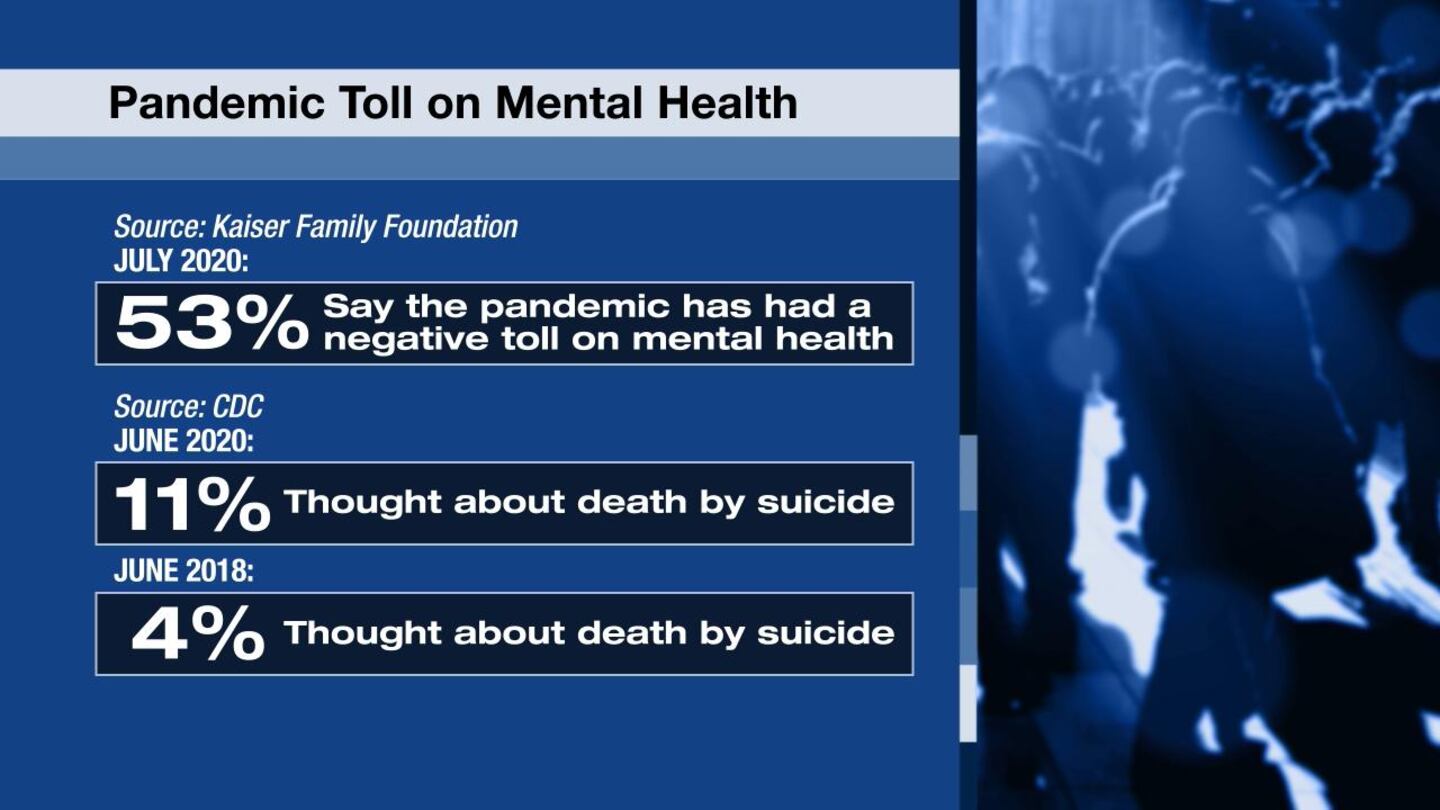 The Kaiser Family Foundation reported 53% of people said this pandemic has had a negative impact on their mental health.