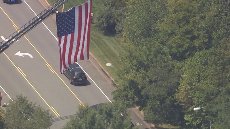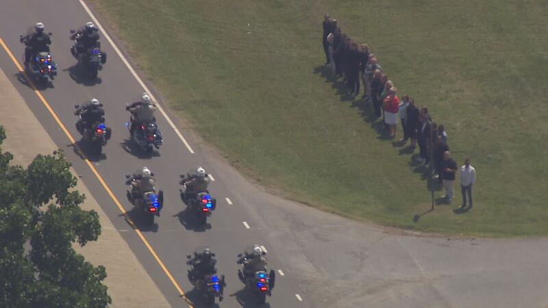 Chopper 9 Skyzoom flew over the procession for Broadway from James Funeral Home to Lake Forest Church in Huntersville.