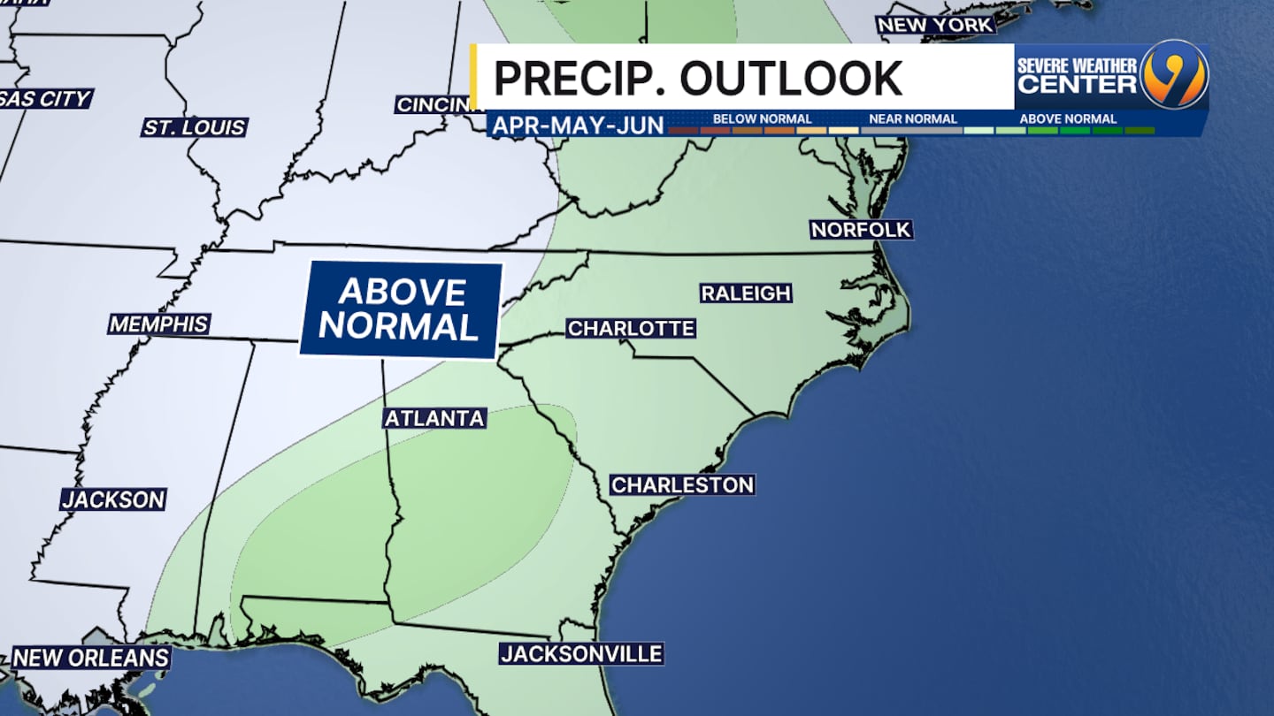 The CPC forecasts above-normal precipitation for the Southeast for April, May, and June. Historically, our rainiest months in Charlotte occur in July and August.