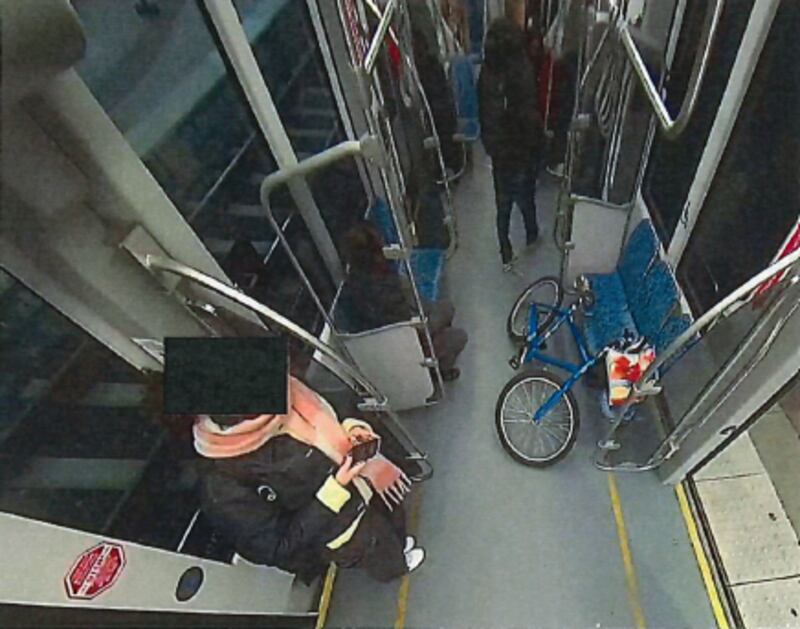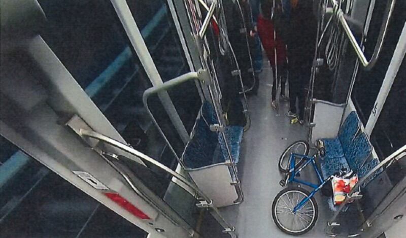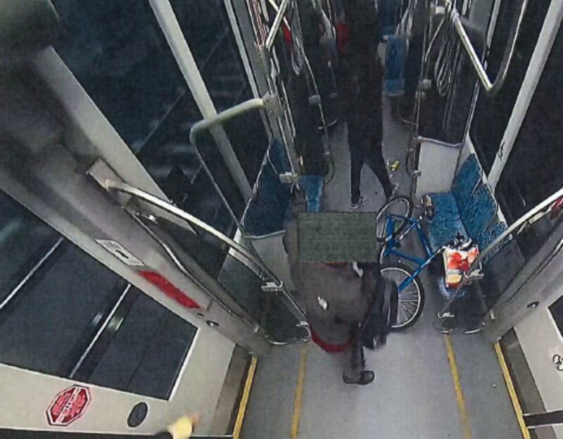 The criminal complaint contained images of the attack. The victim, in a red jacket and black pants, is seen toward the back of the train. The suspect is wearing dark pants. Police said Solorzanocaused a scene and walked up to Kenyon Dobie who could be seen in the images pushing Solorzano. One photo shows Solorzano holding a 12-inch knife up to Dobie before stabbing him.