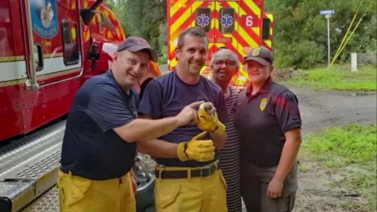 Fire crews and animal control rescued the mother and the day-old puppies, but one of them was hard to reach. The puppy was about 20 feet inside the small drain.