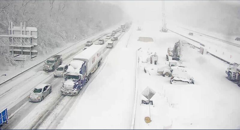 Crews were working to tow the stopped trucks and to remove snow and ice while guiding stranded motorists to the nearest exits, transportation officials said.