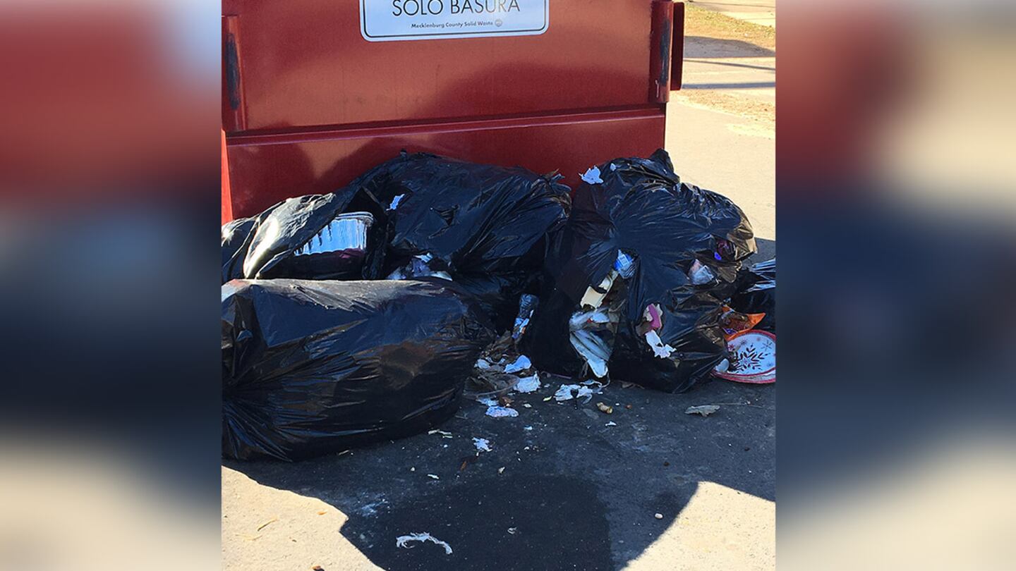 MECKLENBURG COUNTY, N.C. — Bags of trash were split open, spilling out of dumpsters at East Mecklenburg High School.