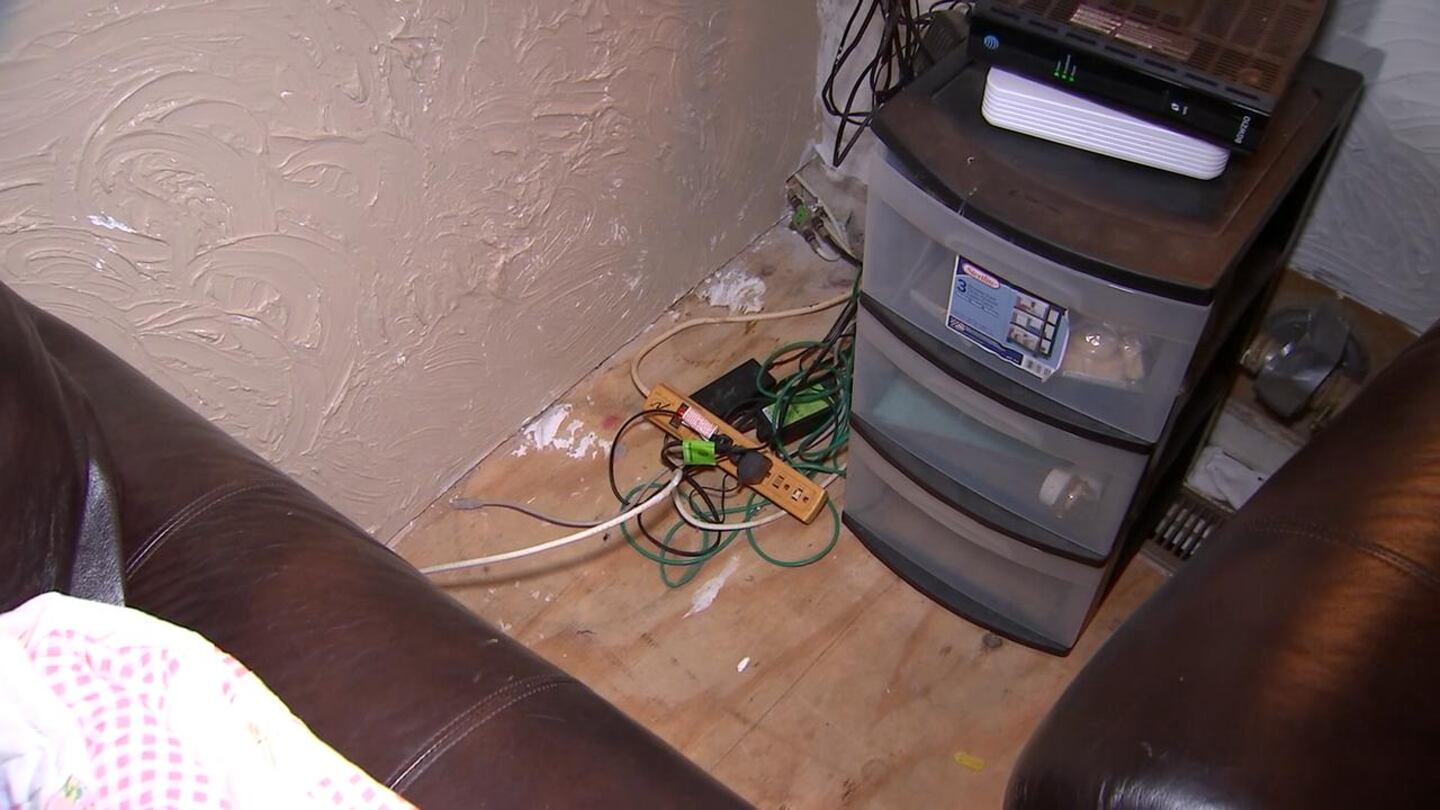 Gibson’s home is a 42-year-old trailer that has bad wiring. Cables run across the floors in the home.