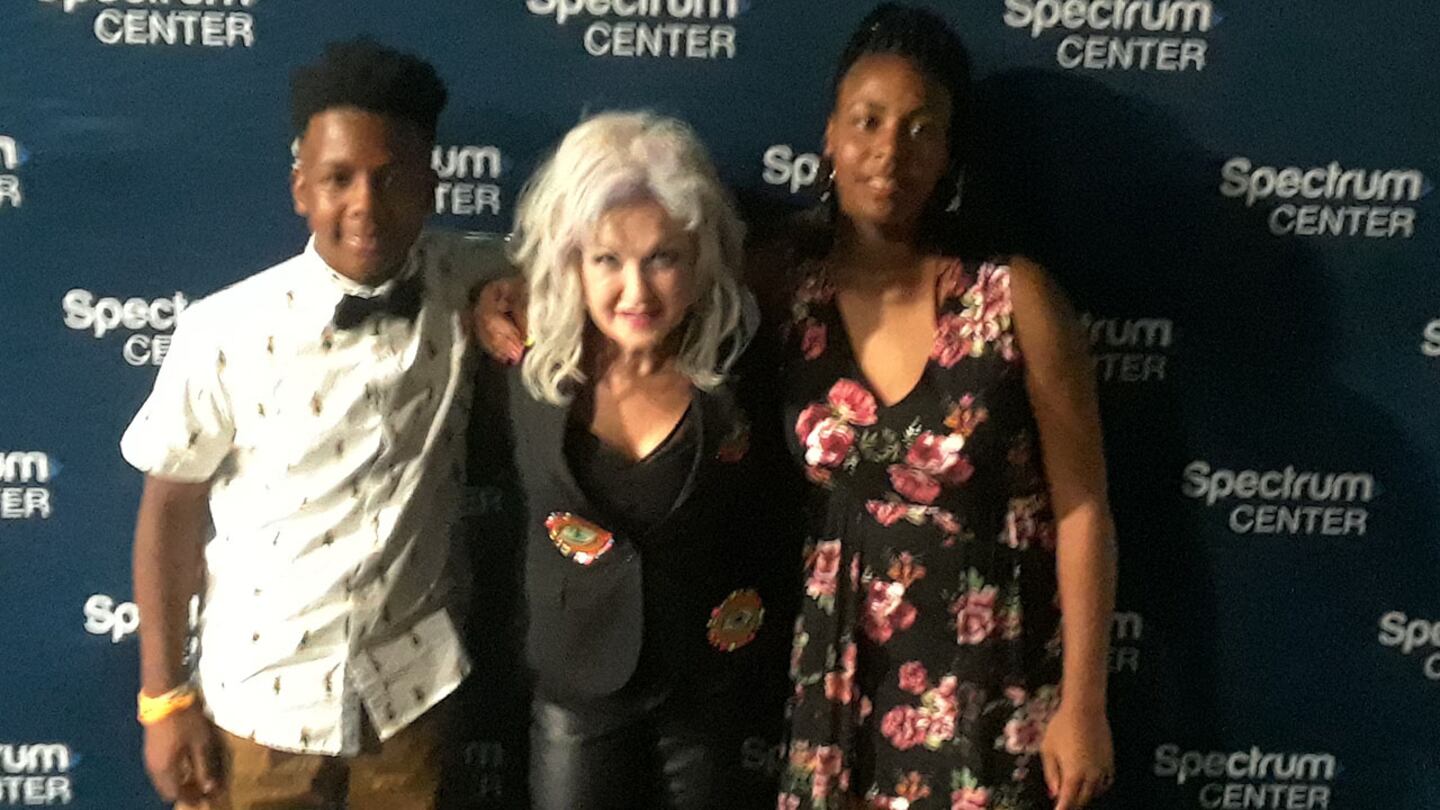 Mya Worley, 14, and her younger brother Ronald Jr. Worley, 13, were playing music at the corner of Trade and Tryon Friday night, but they did not notice performer Cyndi Lauper observing the duo.