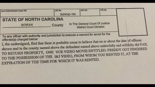 CONCORD, N.C. - A Concord man was arrested for failing to return a 2002 VHS rental movie, “Freddy Got Fingered.”