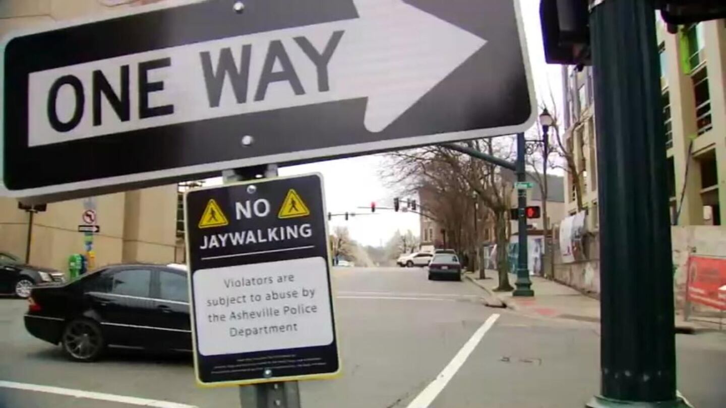 The mock signs said, "Violators are subject to abuse by the Asheville Police Department."