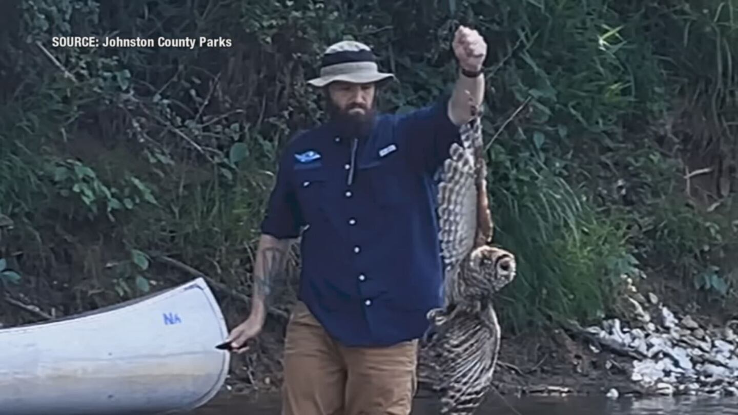 JOHNSTON COUNTY, N.C. — Johnston County Parks staff members on the Neuse River in eastern North Carolina rescued an owl caught in fishing line.