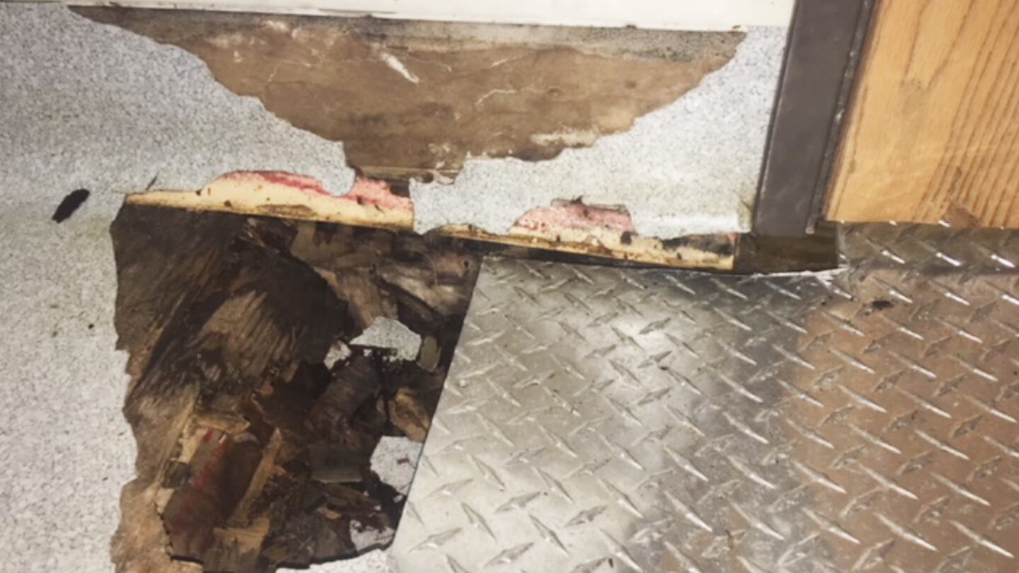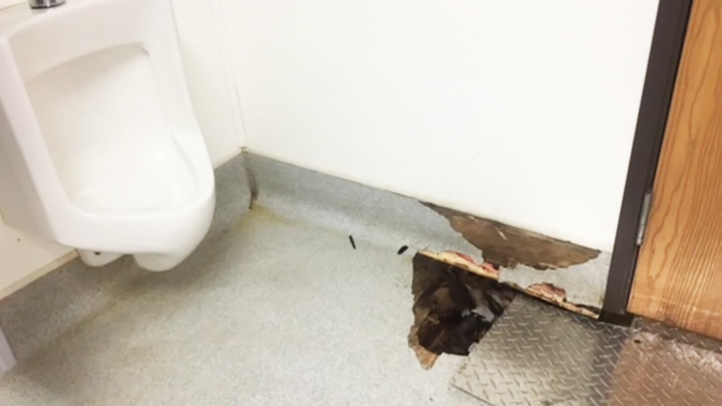 The inspection found insect eggs in the refrigerator in the music room, a rotted hole in the boy’s restroom, pink buildup around water fountain nozzles and dead cockroaches in the kitchen.