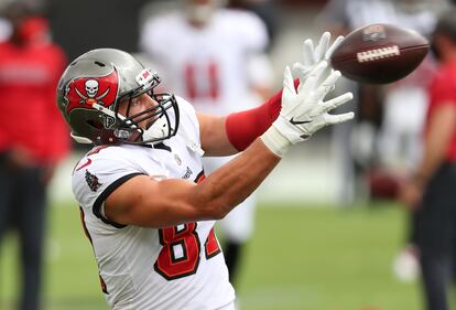 PHOTOS: Carolina Panthers vs. Tampa Bay Buccaneers Tampa Bay Buccaneers tight end Rob Gronkowski (87) catches a pass before NFL football game against the Carolina Panthers Sunday, Sept. 20, 2020, in Tampa, Fla. (AP Photo/Mark LoMoglio) (Mark LoMoglio/AP)