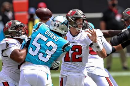PHOTOS: Carolina Panthers vs. Tampa Bay Buccaneers Tampa Bay Buccaneers quarterback Tom Brady (12) throws a pass against the Carolina Panthers during the first half of an NFL football game Sunday, Sept. 20, 2020, in Tampa, Fla. (AP Photo/Mark LoMoglio) (Mark LoMoglio/AP)
