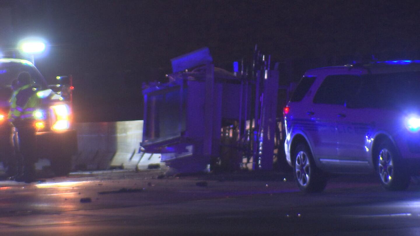 Channel 9′s photographer at the scene saw a pickup truck with damage to the front driver side and some type of large debris on the side of the highway.