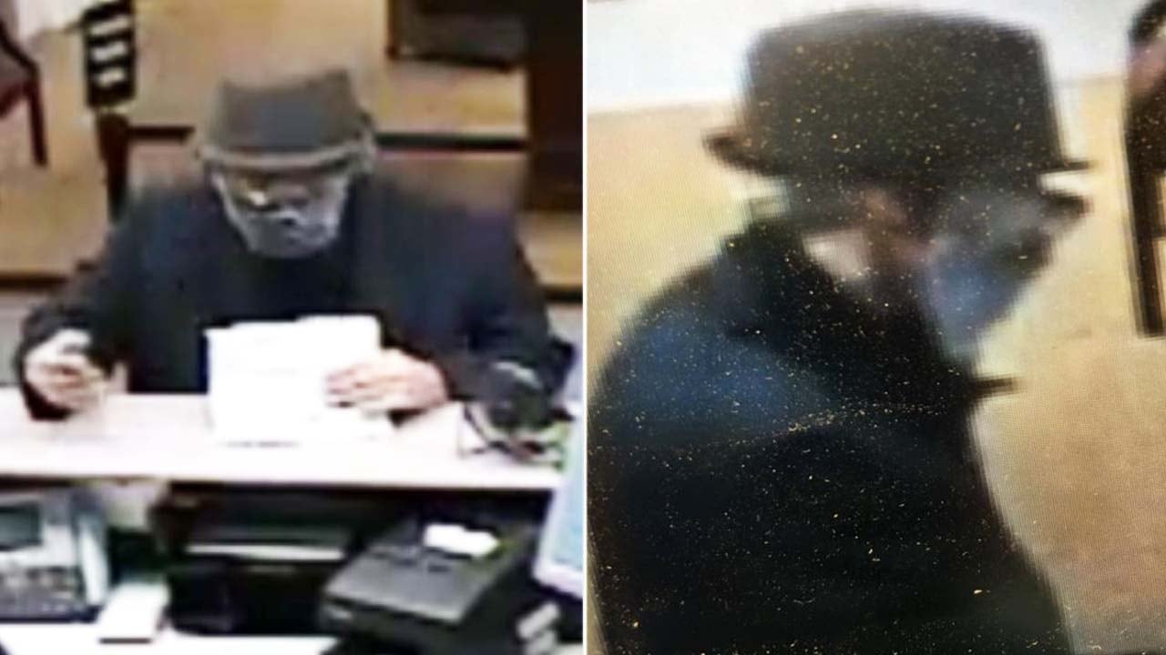 Officials said a man wearing a dark jacket, gray pants, glasses, a bowler hat and a mask entered the bank and gave the teller a note. According to police, the man told the employee to give him everything she had.
