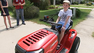 Channel 9 learned the boy was saving his money in order to buy a lawnmower. Mooresville-based Lowe's heard about the story and donated a new-pony model riding lawnmower to him.