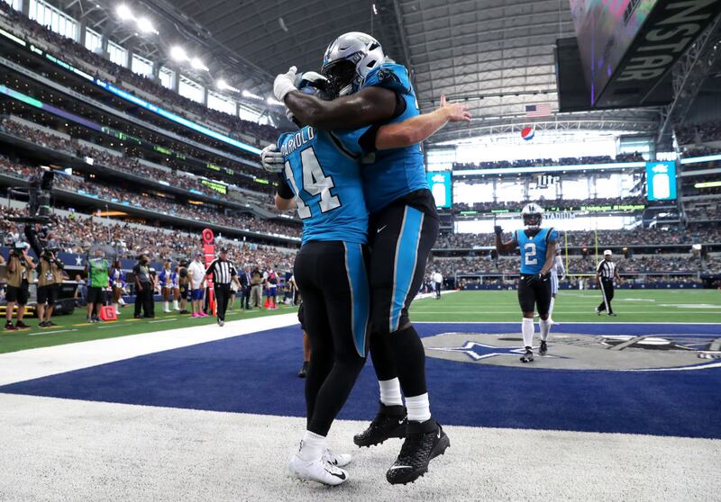 Darnold, who had five rushing TDs in 38 career games with the New York Jets, matched Elliott’s 1-yard plunge in the first quarter with a 1-yard option keeper. The Panthers went ahead 14-13 on an 11-yard QB draw.