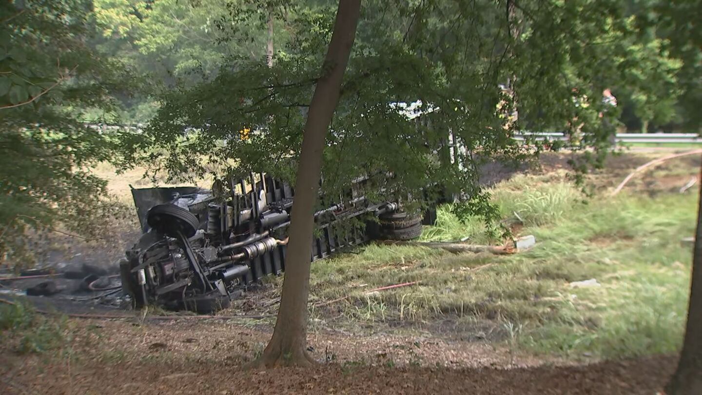 Channel 9 got to the scene where firefighters extinguished a fire, which consumed a tractor-trailer hauling tires.