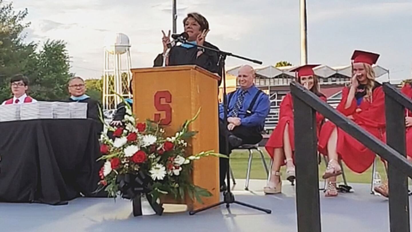Barrier was in the football stands at South Stanly High School on Friday night to see her daughter get her diploma. She said the pomp and circumstance turned to concern and confusion during Calvert’s speech.
