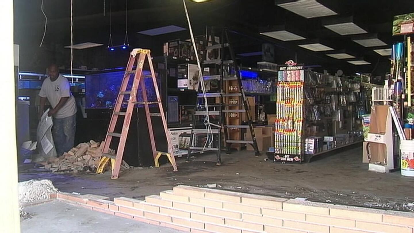 The crash left a massive hole in the front of the store, which will cost thousands of dollars to repair, but the owner said he's focused on rebuilding.